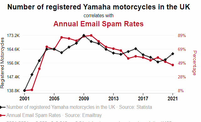Se você trabalha com e-mail marketing, deveria torcer… contra a venda de motos Yamaha no Reino Unido? Pela correlação, é assim que você diminui a taxa de Spam.