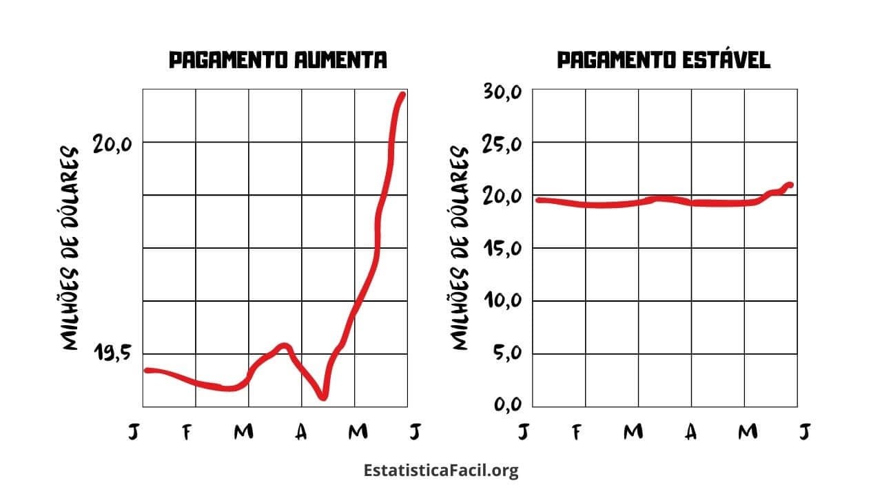 Os dados são os mesmos nos dois gráficos. Olha como a percepção é completamente diferente só de você manipular o Eixo Y (Exemplo do “Como Mentir com Estatística”)